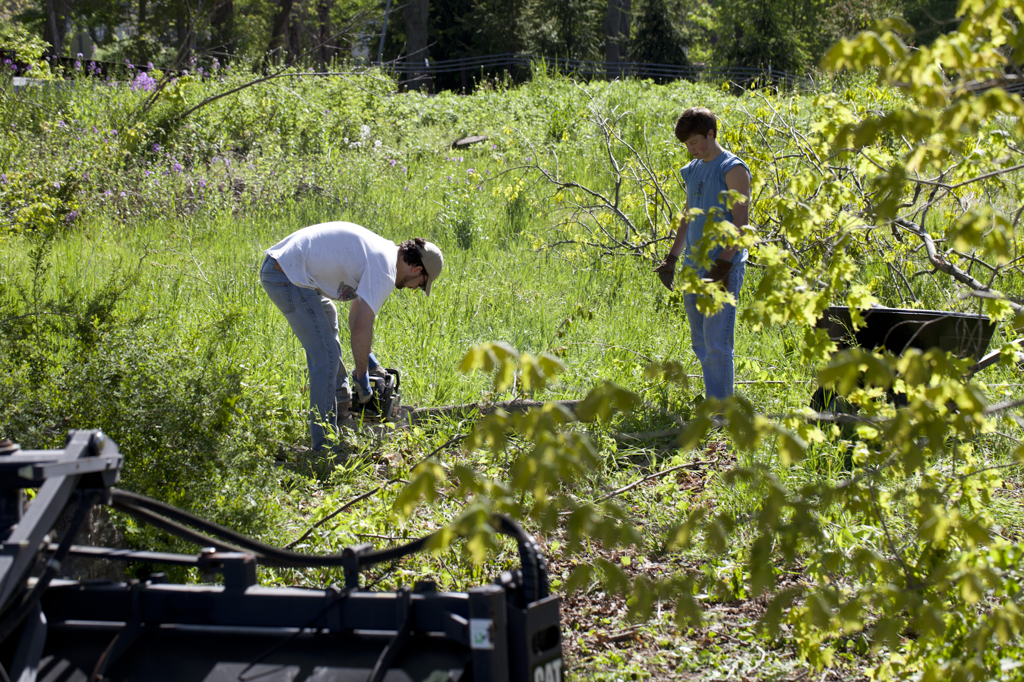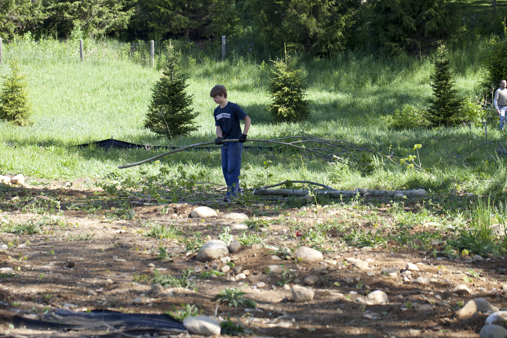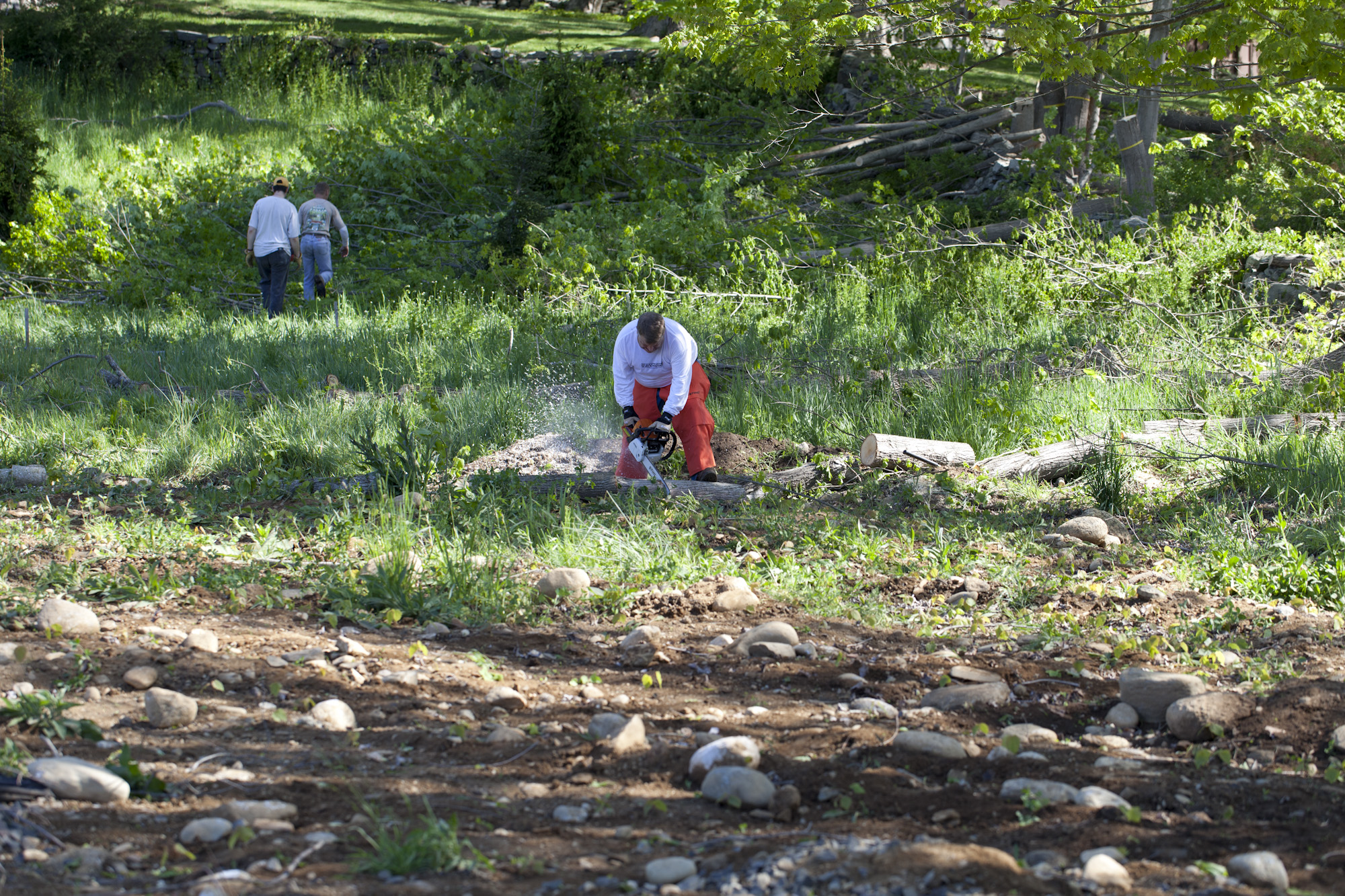 much more visible from the road, and our frontage now shows a lovely stone wall and a half dozen maples.