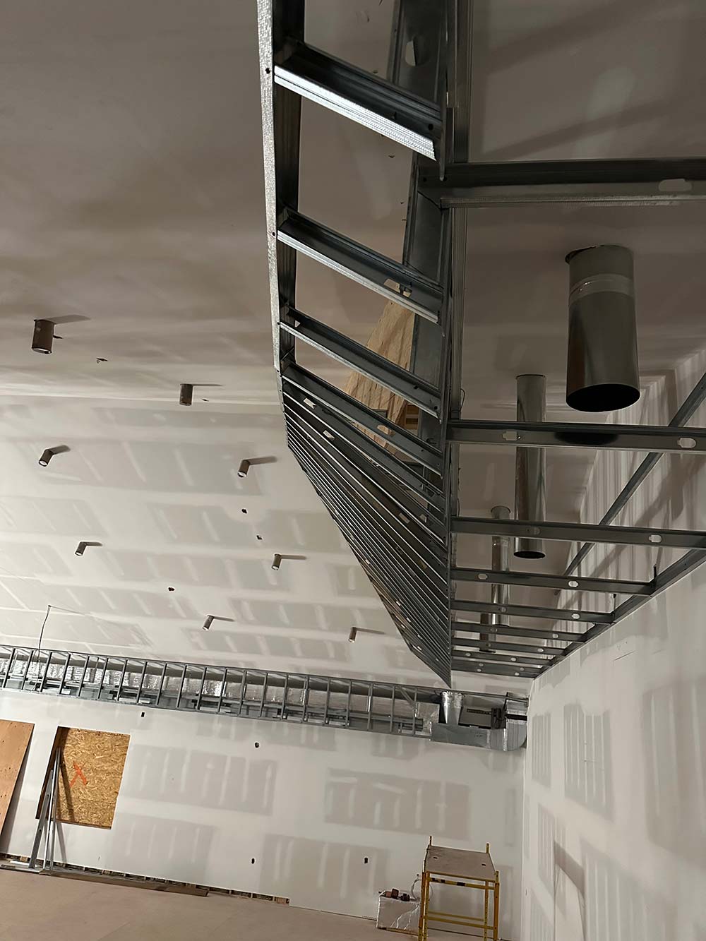 Most electrical is done, insulation is done, framing is done, windows are installed, HVAC is installed, and drywall is done. Â This week will see the painting get done quickly followed by the construction of the stage.