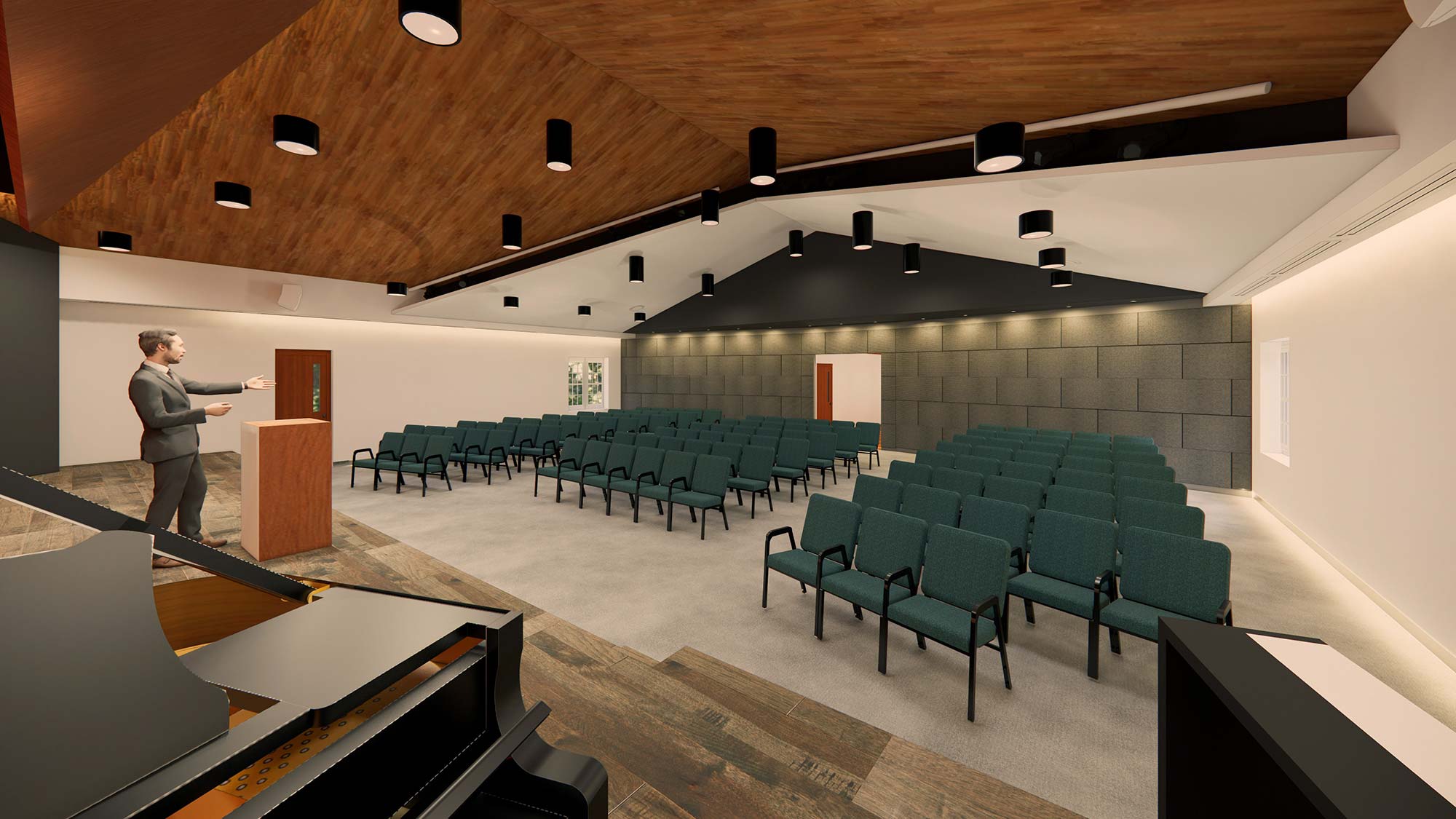 For the past couple of years, a lot of effort has gone into finishing our new auditorium. Research, planning, design, more research, meetings with architects & engineers, more research and planning… But all that hard work has paid off, and we are happy to announce that we are nearing the completion of our new auditorium!